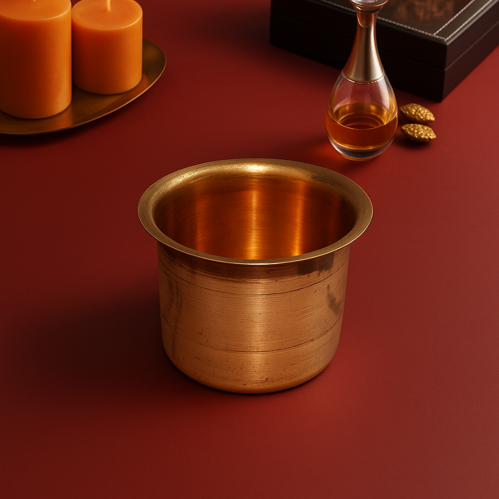 This traditional Water Glass made from Bronch brings simplicity and authenticity to your everyday rituals. With its classic design and earthy finish it is perfect for puja use temple offerings or even as a rustic addition to your kitchenware. Durable lightweight and easy to maintain it adds a timeless charm to your spiritual and daily routines.